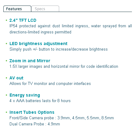 •插入管选择前/侧摄像探头:3.9毫米,4.5毫米,5.5mm和8.5毫米
