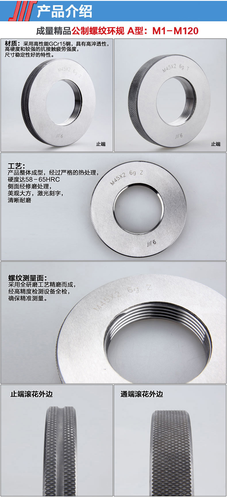 1.公制螺纹环规用途:综合检验GB/T 192-197公制外螺纹。