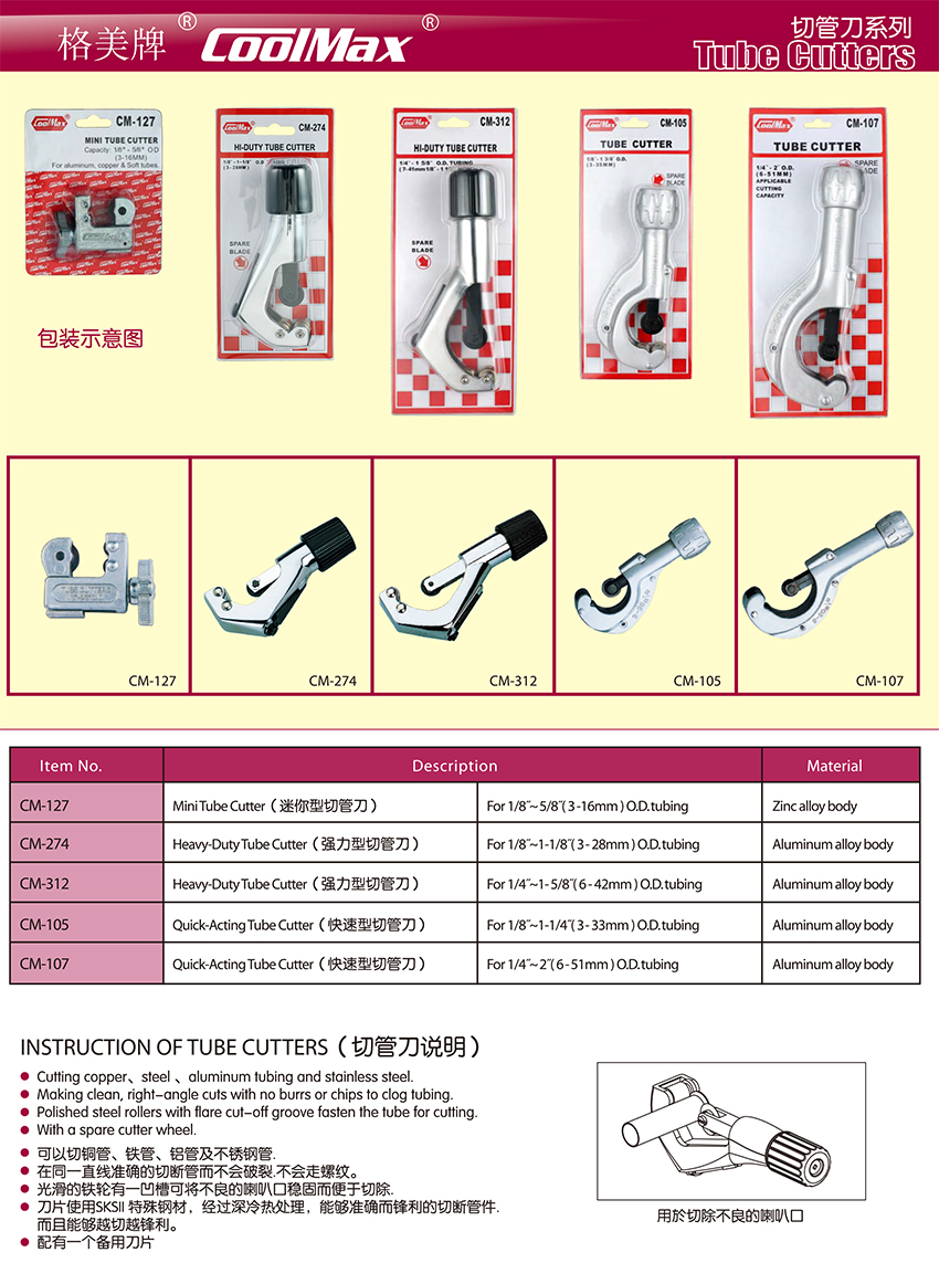 6. 快速型切管刀,格美,CM-107,1/4"~2"(6-51mm)O.D.管径.