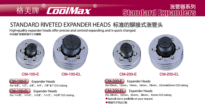 鼠标按住图片可看放大效果标准铆接式扩管头,格美,CM-200-E