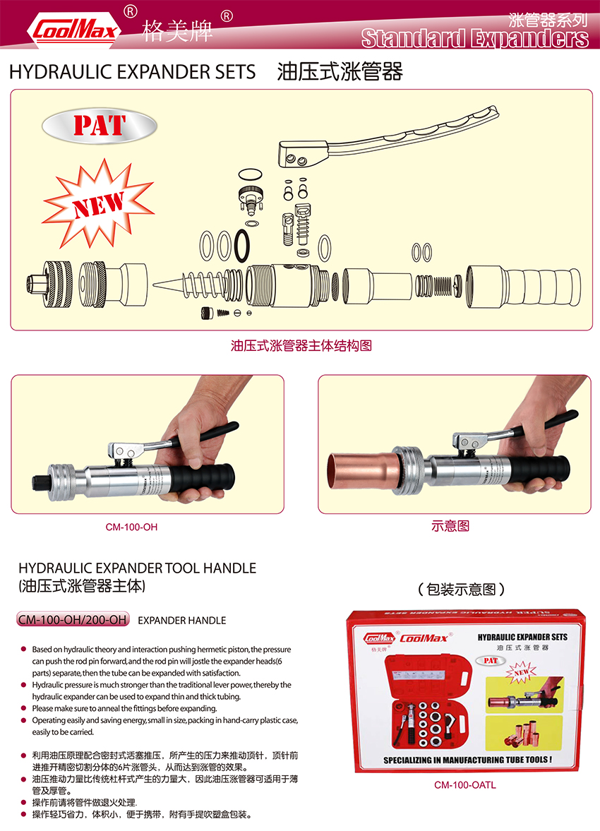 .油压推动力置比传统杜杆式产生的力量大,因此油压涨管器可适用于薄管及厚管。
