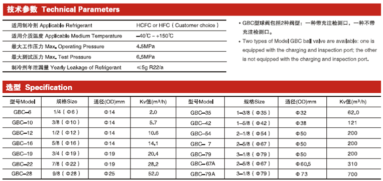 · GBC型球阀用于冷冻、冷藏和空气调节装置的液体、吸气和热气管路上。