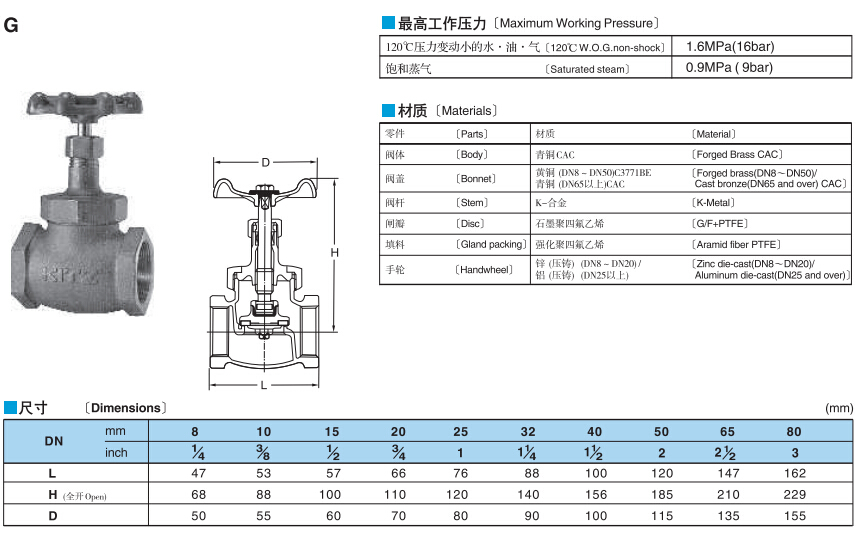 鼠标按住图片可看放大效果开滋/KITZ G-DN50 青铜截止阀