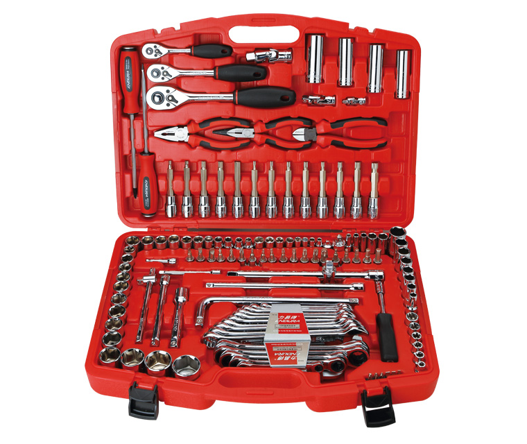 | 扳手 | ·5件双梅花棘轮扳 8x10mm,12x13mm,14x15mm,16x18mm,17x19mm·10件两用扳手8,10,12,13,14,15,16,17,18,19mm·3件专业棘轮扳手 6.3mm,10mm,12.5mm ·1件12.5mm系列L型扳手250mm ·9件L型花型扳手T10,T15,T20,T25,T27,T30,T40,T45,T50·9件加长球头内六角扳手1.5,2,2.5,3,4,5,6,8,10mm |