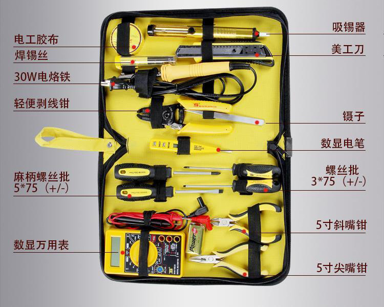 | 电子电工类工具 | ·1件数显电笔·1件数显万用表·1件镊子·1件胶布·1件剥线钳 |