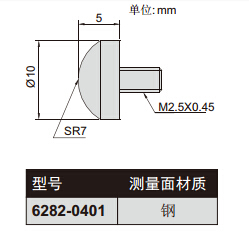 INSIZE 球面测头,钢测量面,6282-0401