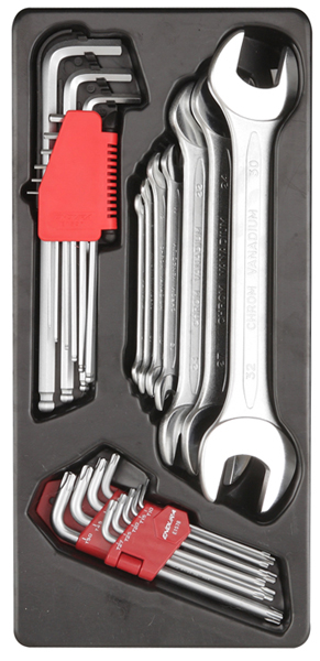 | 内含工具 | ·9件套L型花型扳手·9件套公制特长球头内六角·8件铬钒钢双开口扳手6×7,8×10,10×12,11×13,12×14,22×24,24×27,30×32mm |