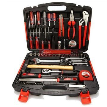 70件套机修工具组套 5-公制凸筋两用扳手8,10,12,13,14mm 8-8件套圈型公制内六角1.5,2,2.5,3,4,5,5.5,6mm 9-6.3mm系列6角套筒4,5,6,7,8,9,10,11,12mm 1-6.3mm系列旋具头接头 8-10mm系列6角公制套筒10,11,13,14,15,16,17,19mm 3-10mm系列棘轮扳手、系列接杆3“ 、系列接头 10mmx6.3mm 1-10mm系列火花塞套筒16mm 3-钢丝钳7“,水泵钳10“,重型欧式活动扳手8“ 4-一字形彩条柄螺丝批3x100,5x100,6x38,6x150mm 4-十字形彩条柄螺丝批#0x100,#1x100,#2x38,#2x150mm 3-6.3mm系列25mm一字型旋具头4,5.5,6.5mm 3-6.3mm系列25mm十字型旋具头#1,#2,#3 6-6.3mm系列25mm六角旋具头2,2.5,3,4,5,6mm 3-6.3mm系列25mm花型旋具头T10,T15,T20 2-6.3mm系列旋柄、塑柄美工刀18mm 3-普通型测电笔190mm、木柄钳工锤300g、卷尺5mx19mm 4-中扁锉8“,圆锉8“,9件塞尺,绝缘胶带 外径尺寸: 420x315x80mm 机修工具组,适用于工矿、物业、设备安装维修。