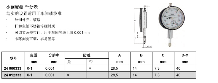 鼠标按住图片可看放大效果VOGEL 千分表,0-1mm/0.001mm(防震型),24 012333