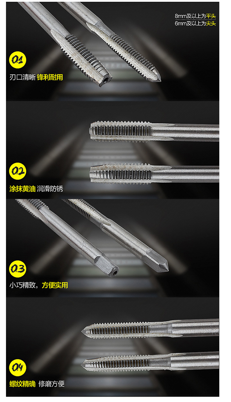 手用丝锥是指碳素工具或合金工具钢滚牙(或切牙)丝锥,适用于手工攻丝。