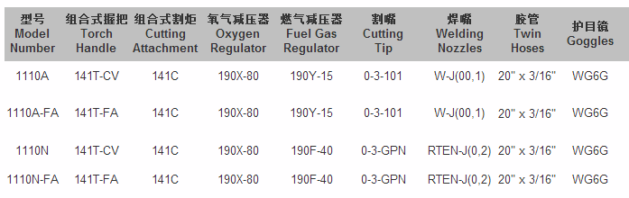 ·1110A适用于氧气、乙炔,1110N适用于氧气、丙烷或天然气