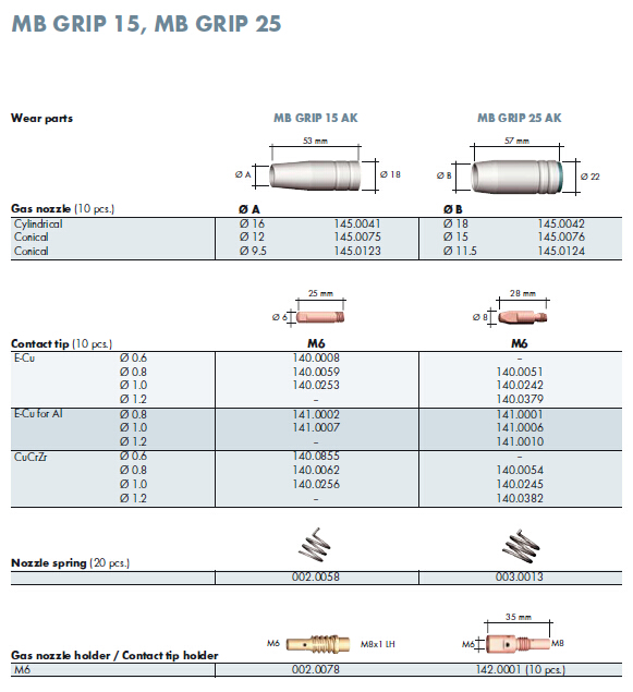适配焊枪:宾采尔MB GRIP 15AK