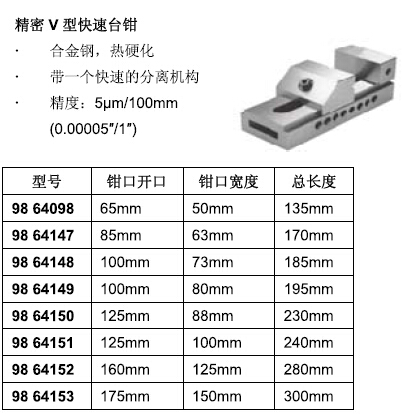 鼠标按住图片可看放大效果精密V型快速台钳,德国VOGEL,98 64153,钳口开度175mm