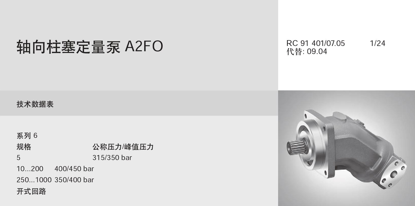 力士乐 A2FO 轴向柱塞定量泵,A2FO45/61R-PBB05