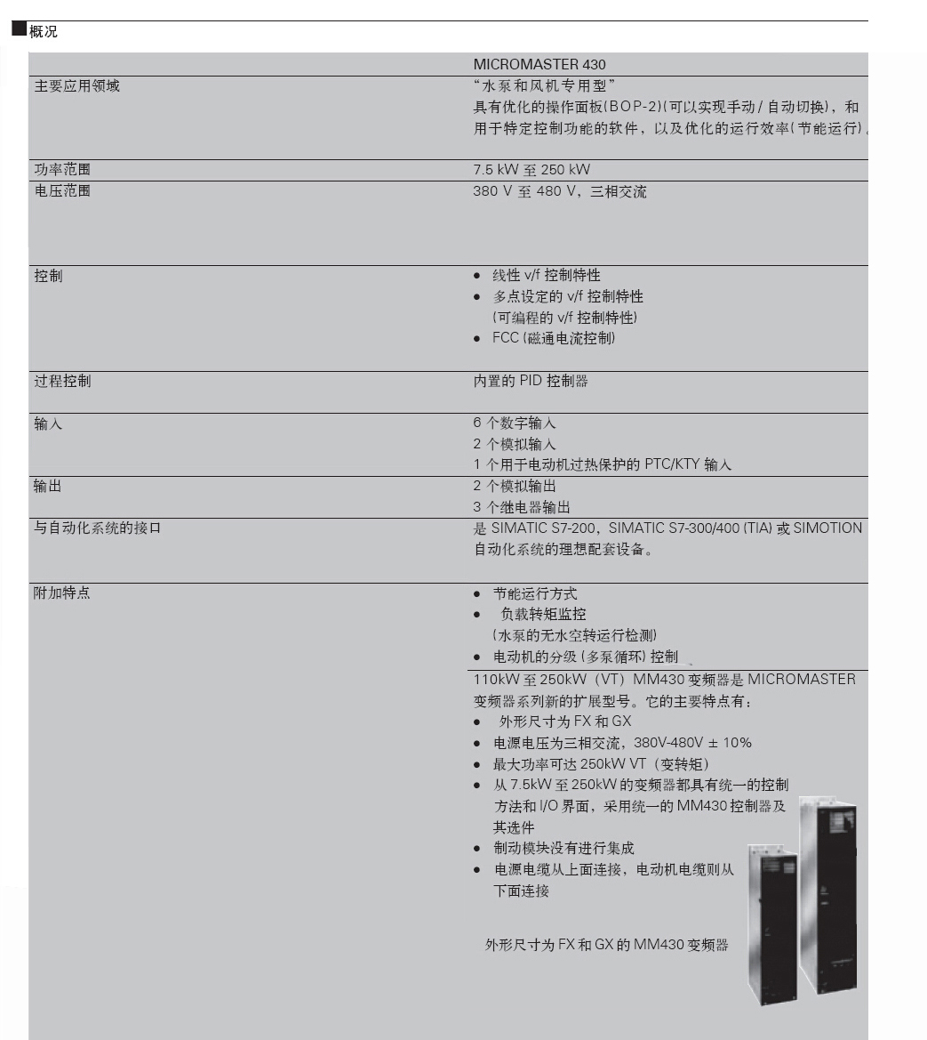 l MICROMASTER 440 变频器适用于各种变速驱动装置。由于它具有高度的灵活性因而可以在广泛的领域得到应用。它尤其适合用于吊车和起重系统、立体仓储系统、食品、饮料和烟草工业以及包装工业的定位系统。这些应用对象要求变频器具有比常规应用更高的技术性能和更快的动态响应。