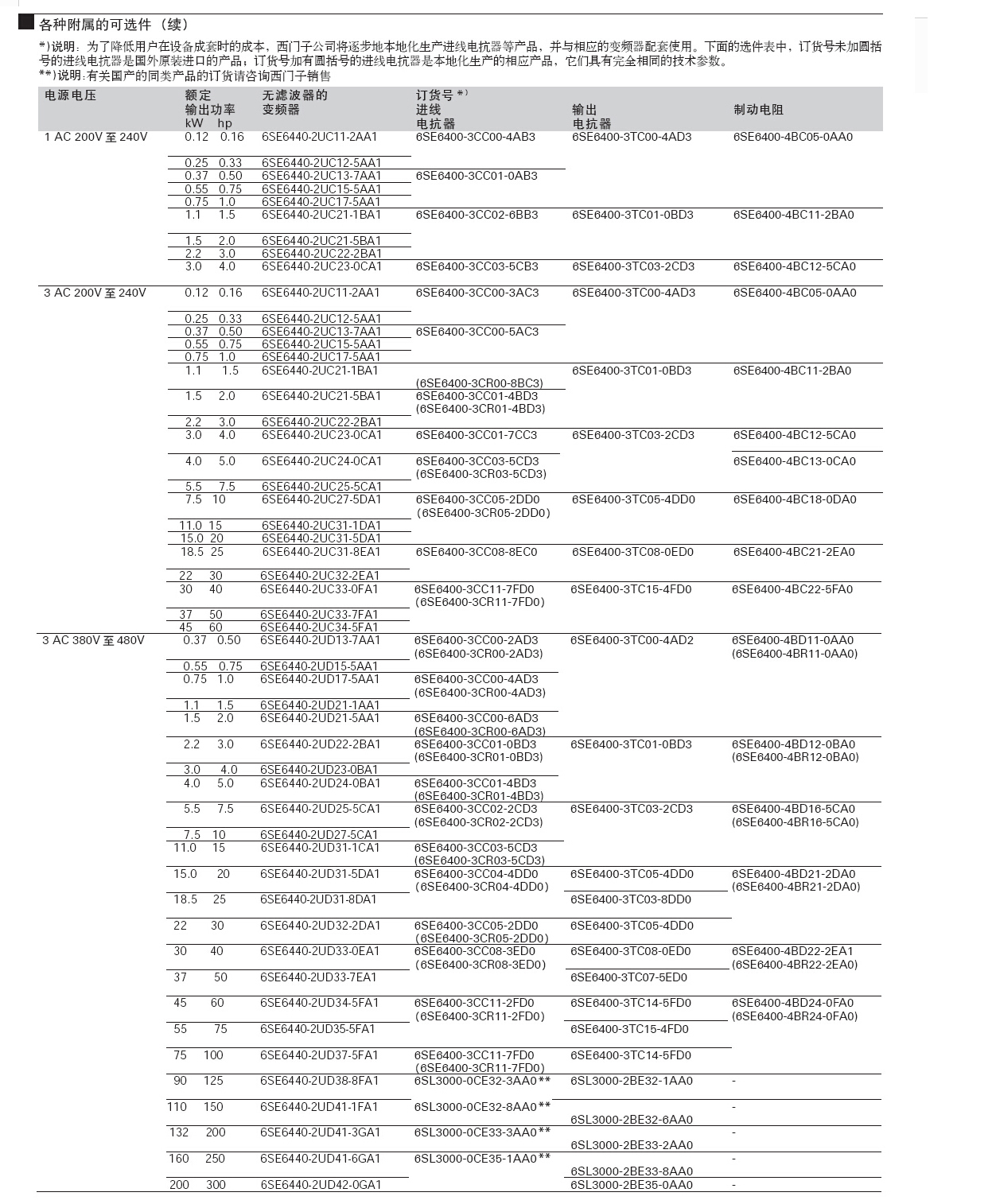 6SE6440-2UC34-5FA1 200~240 三相 154 45 不含 内置 无内置 F 350×320×850 55 IP20