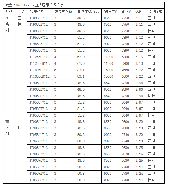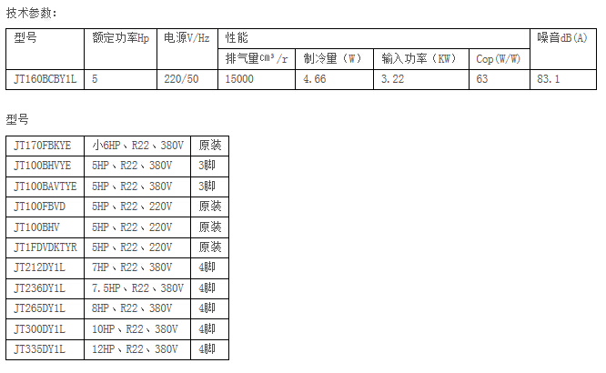 6. 大金R22涡旋压缩机,大金,JT160BCBY1L,380V,50/60Hz,5HP