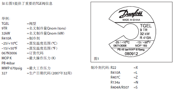 TGE系列膨胀阀名义冷量基于ASERCOM标准:蒸发温度4℃,开启过热度4℃,冷凝温度38℃,液体温度37℃
