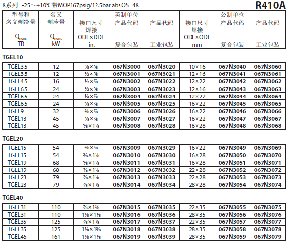 TGE系列膨胀阀名义冷量基于ASERCOM标准:蒸发温度4℃,开启过热度4℃,冷凝温度38℃,液体温度37℃