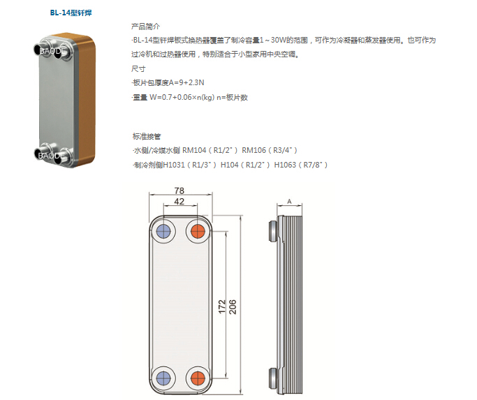 钎焊板式换热器,宝得,BL14×14,板片数量14,0.5HP
