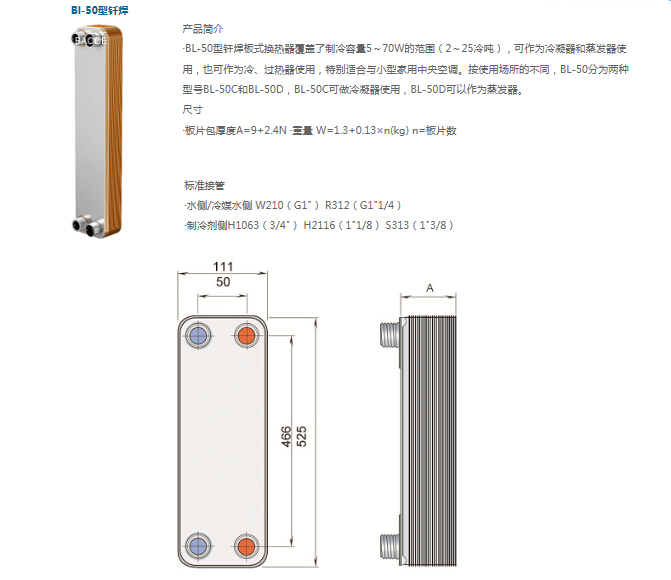 钎焊板式换热器,宝得,BL50×22,板片数量22,4HP
