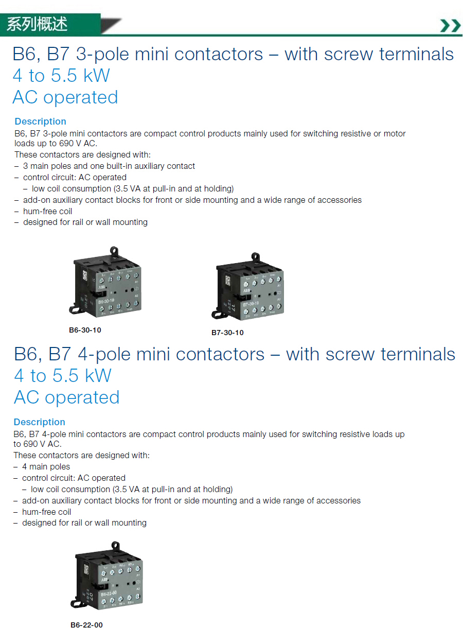 ABB接触器,B6-30-10(AC220-240V50/60HZ)