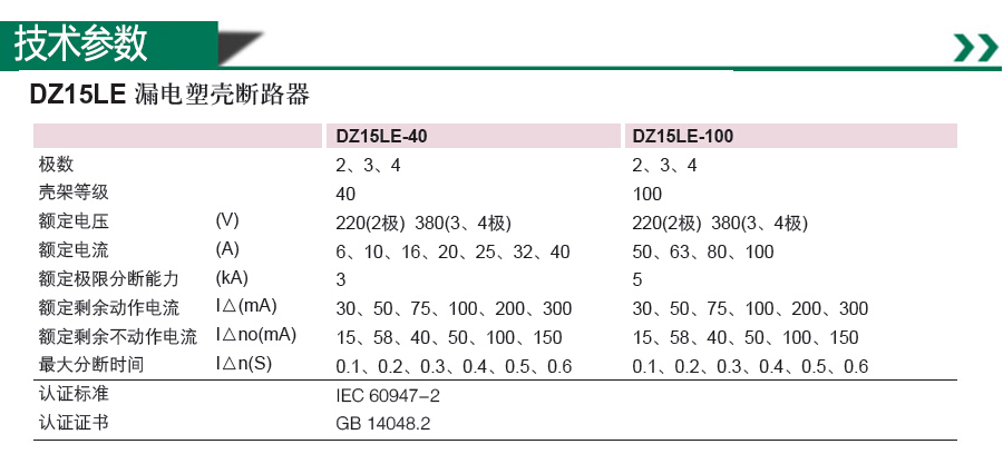 德力西 塑壳漏电断路器,DZ15LE-100 2901 63A 30mA,DZ15LE100632S