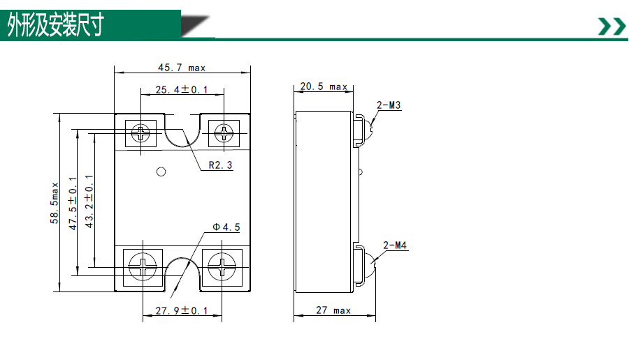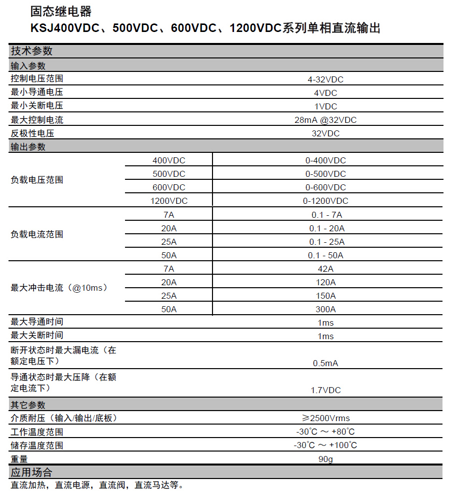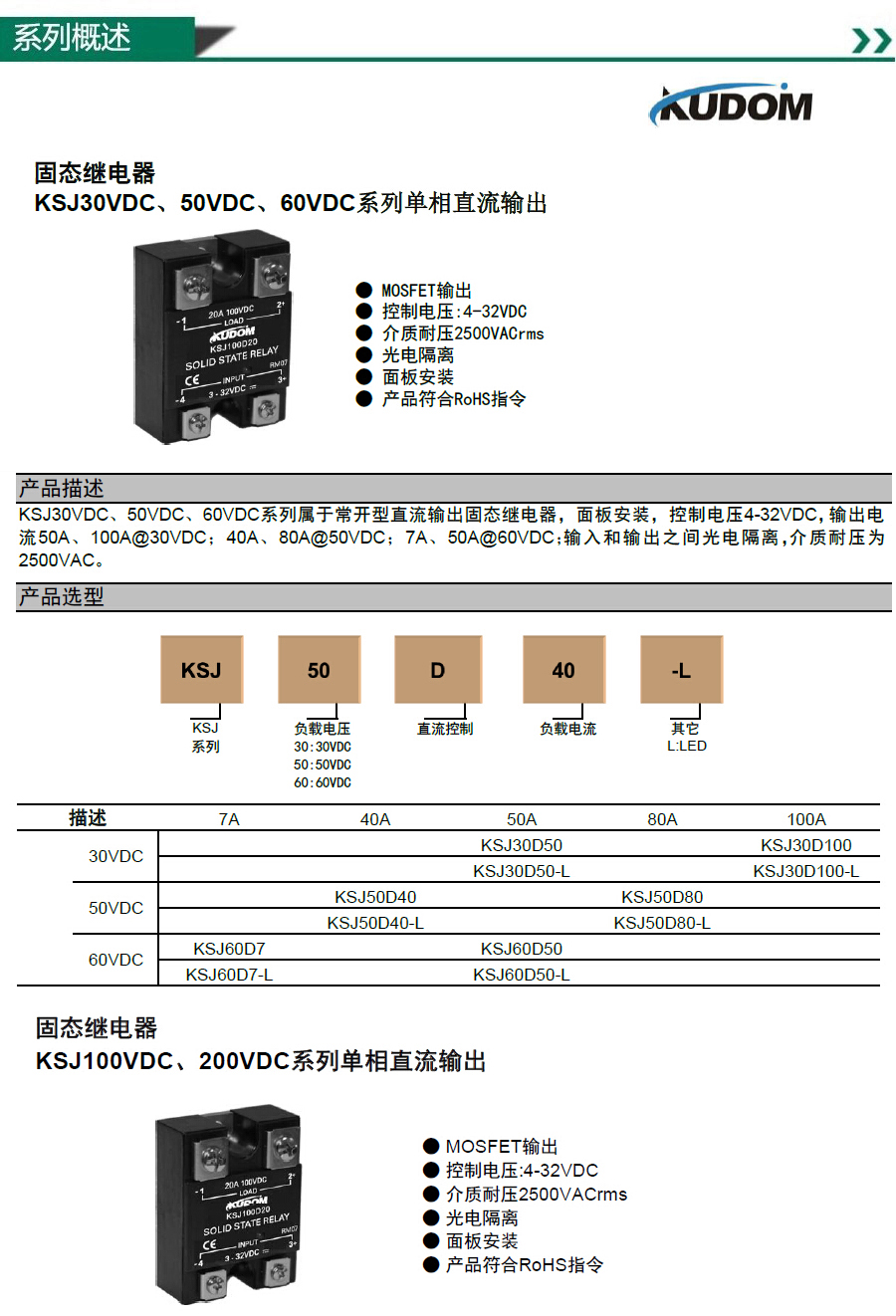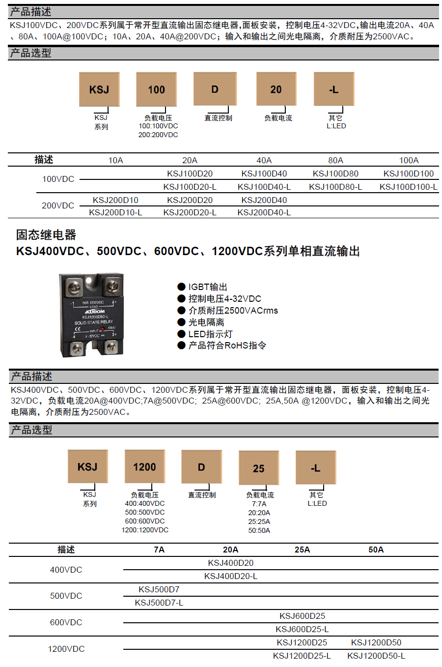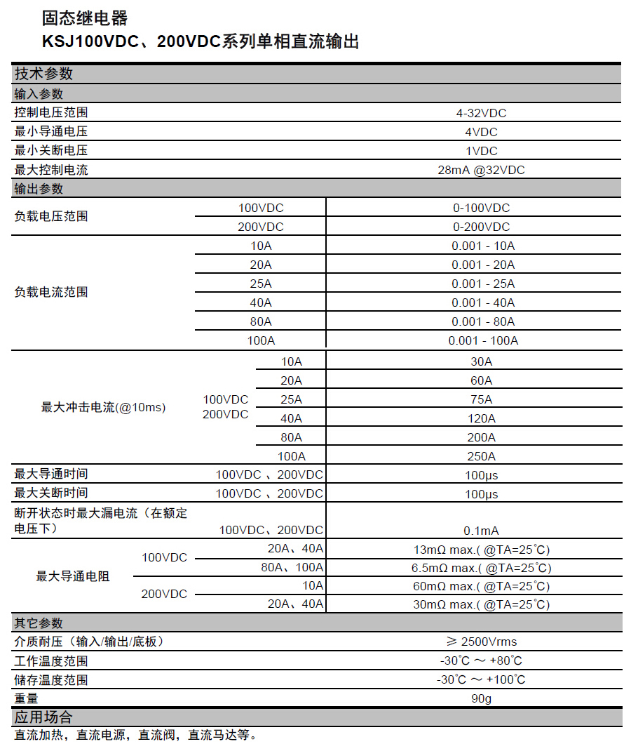 库顿 直流面板安装固态继电器,KSJ200D20-L 20A 0-200VDC 4-32VDC控制