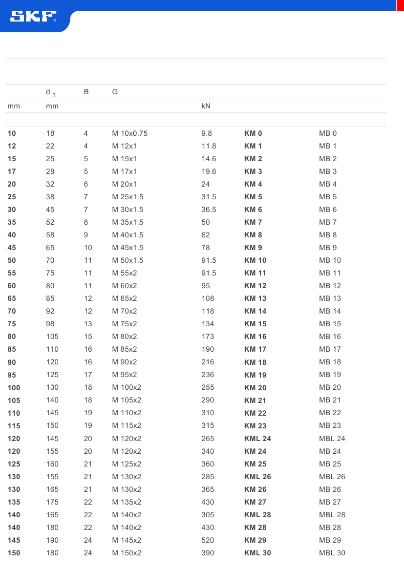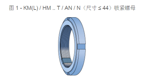 KM 和 KML 锁紧螺母(图 1)带有公制螺纹并使用锁定垫圈(图 2)。
