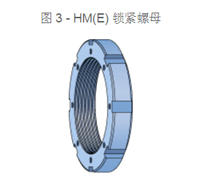 HM 和 HME 锁紧螺母(图 3)带有公制梯形螺纹并使用锁定扣(图 4)。