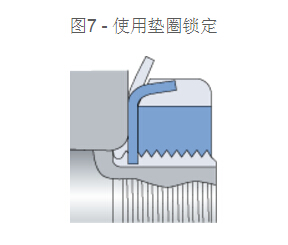 螺纹直径 ≤ 8 5/8 in.(尺寸 ≤ 44)的锁紧螺母使用锁定垫圈(图 2)。