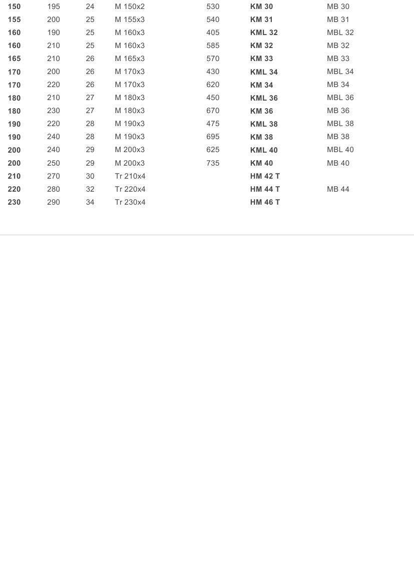 HM .. T 锁紧螺母(图 1)带有公制梯形螺纹并使用锁定垫圈(图 2)。 对于某些尺寸,我们不提供锁定垫圈,因为这些螺母仅用于拆卸目的。