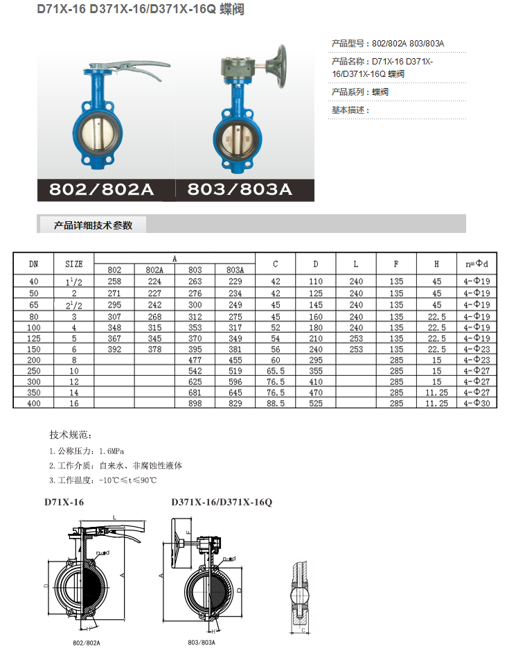 鼠标按住图片可看放大效果埃美柯/AMICO D371X-16Q,803-500 蜗轮对夹蝶阀